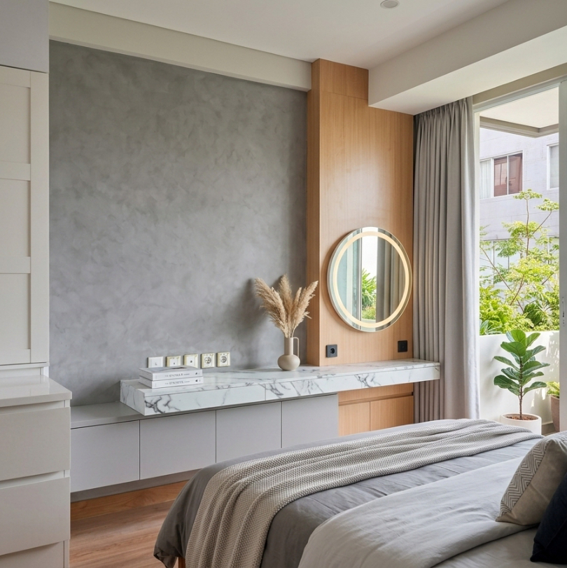 - Fleksibel untuk Berbagai Gaya Interior: Meskipun identik dengan gaya industrial, semen wash juga sangat serasi dipadukan dengan gaya Skandinavia, kontemporer, maupun rustic.
