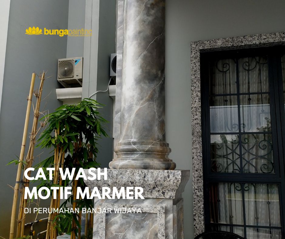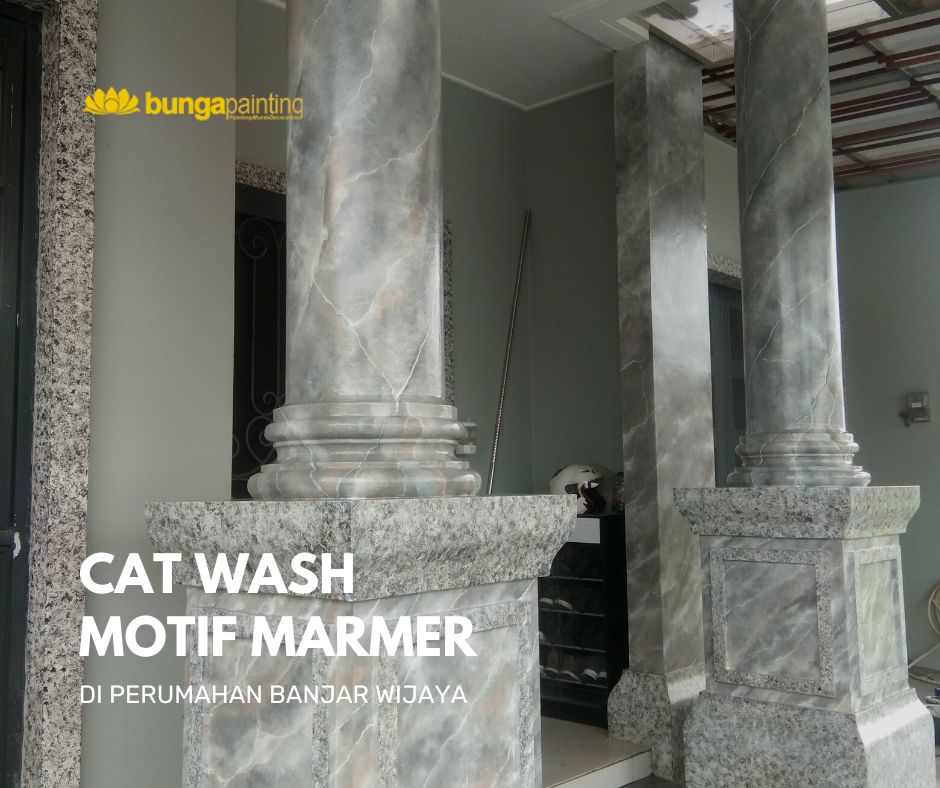 Bunga Painting melayani jasa cat wash motif marmer profesional di Banjar Wijaya. Tampilan marmer mewah, rapi, dan tahan lama untuk pilar dan dinding.